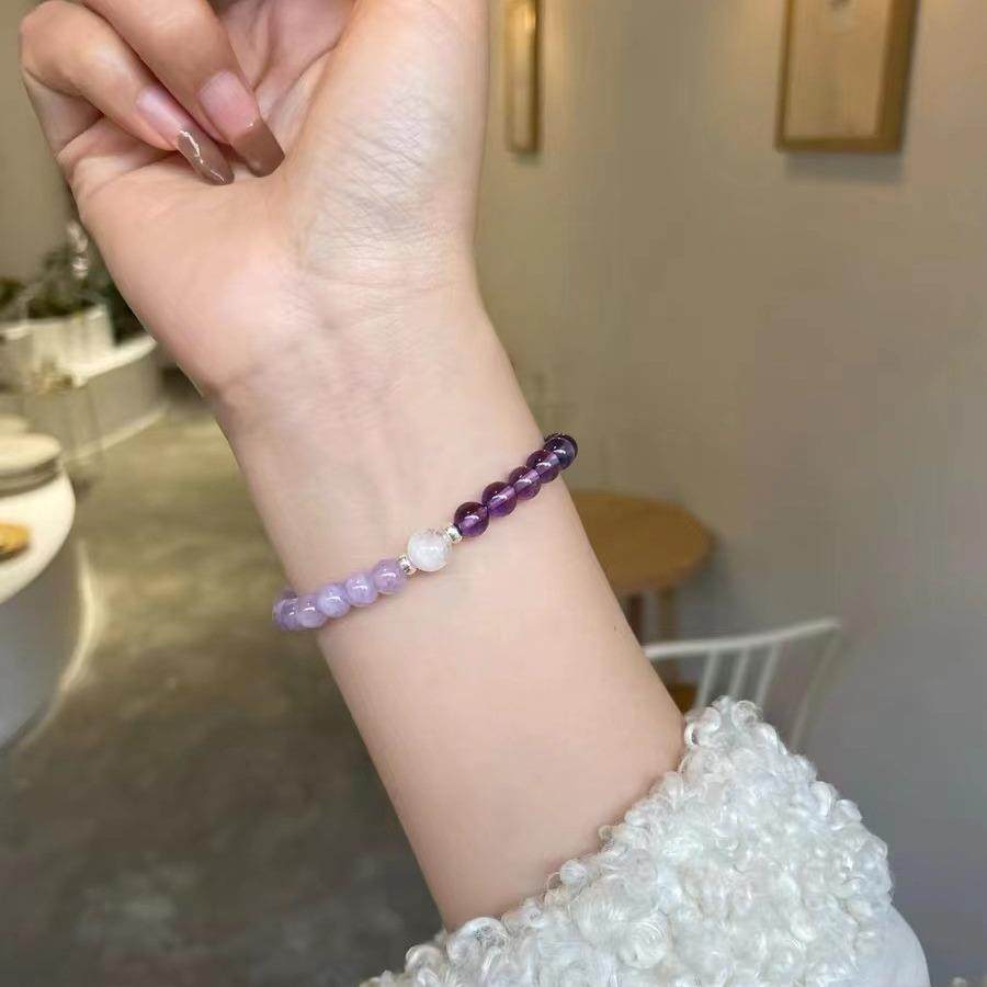 2026薰衣草紫水晶手链双拼小众设计轻奢ins闺蜜小清新水晶手串手