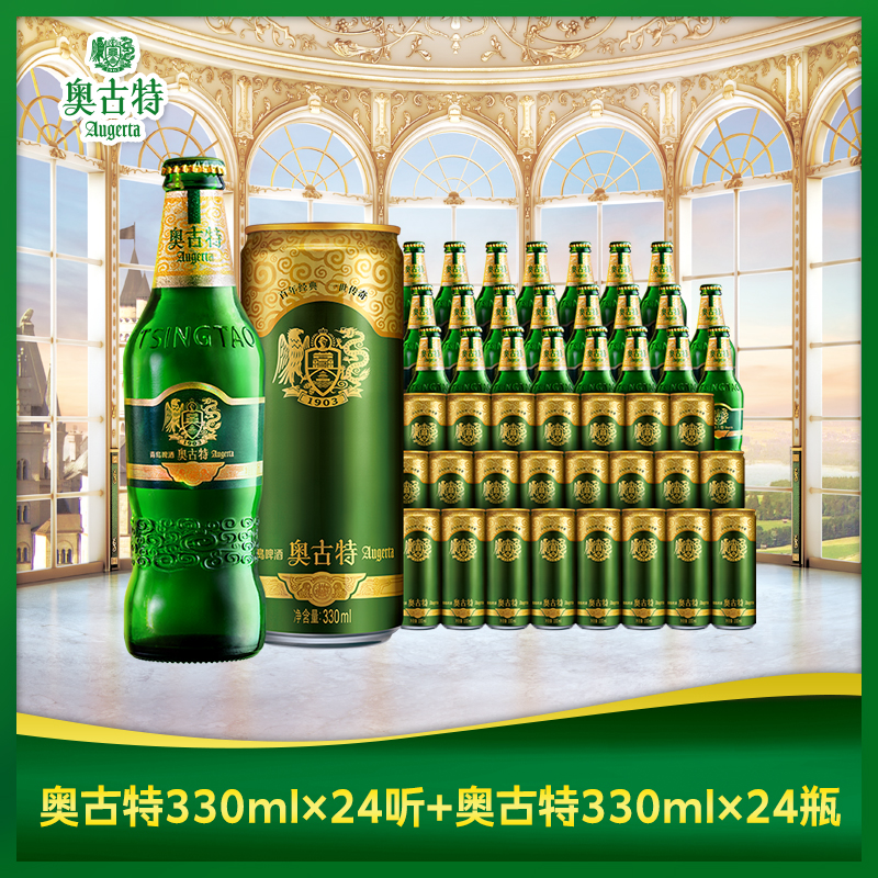 青岛啤酒 青岛奥古特330ml*24罐装+330ml*24瓶小瓶装组合整箱套装