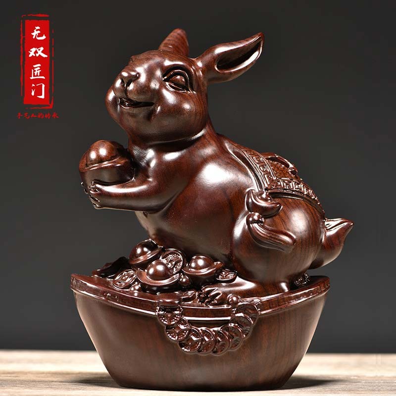黑檀木雕兔子摆件l实木十二生肖雕刻家居客厅书架装饰红木工艺礼