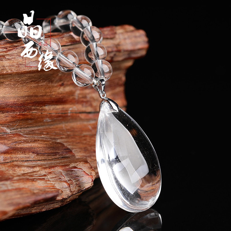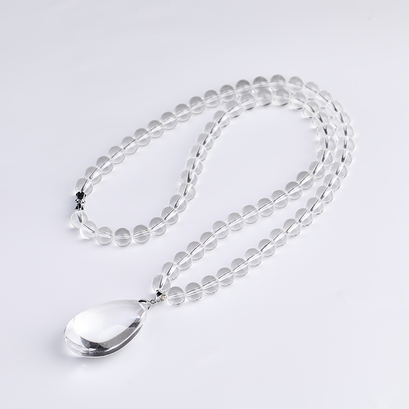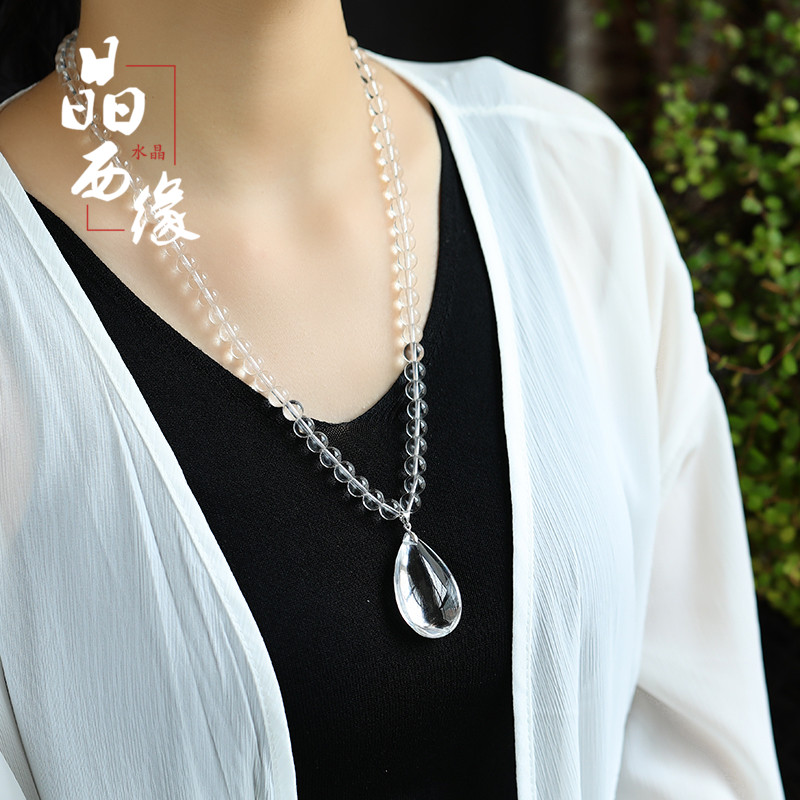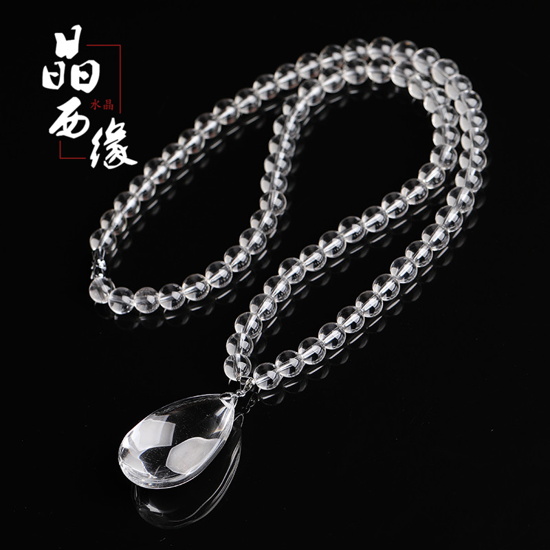 天然白水晶项链男女水晶饰品吊坠光面毛衣链锁骨链情侣送同款手链
