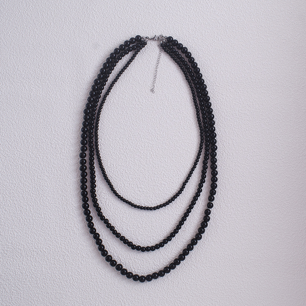 黑色复古仿珍珠多层项链 简约三层叠戴旗袍配饰品 新中式毛衣链女