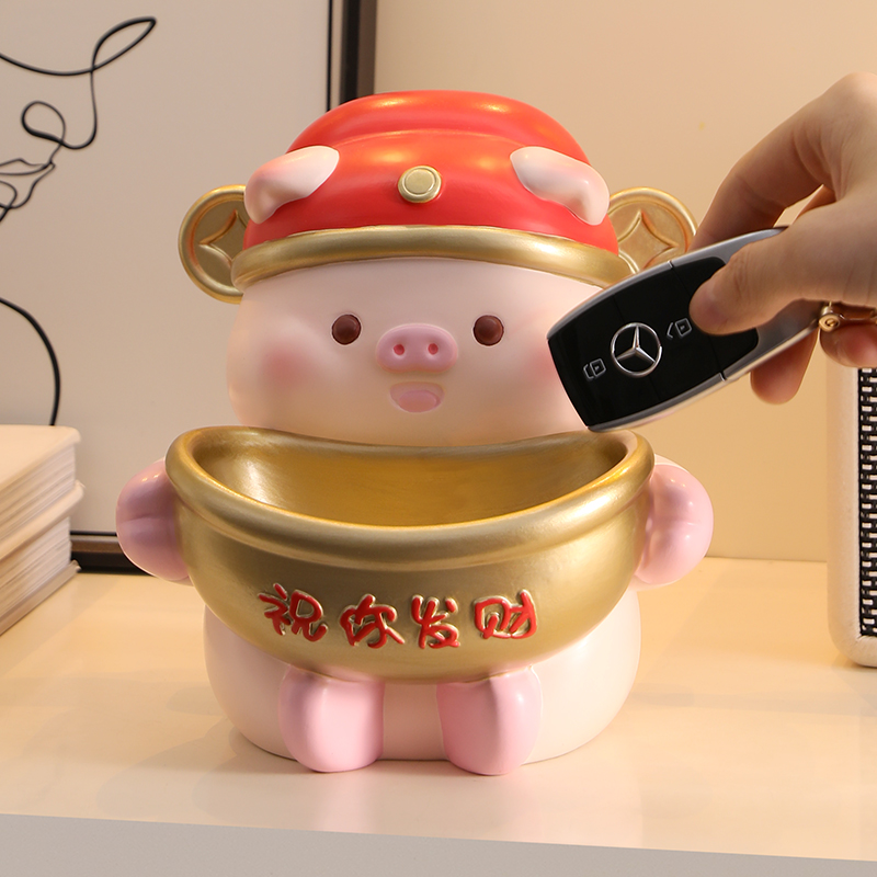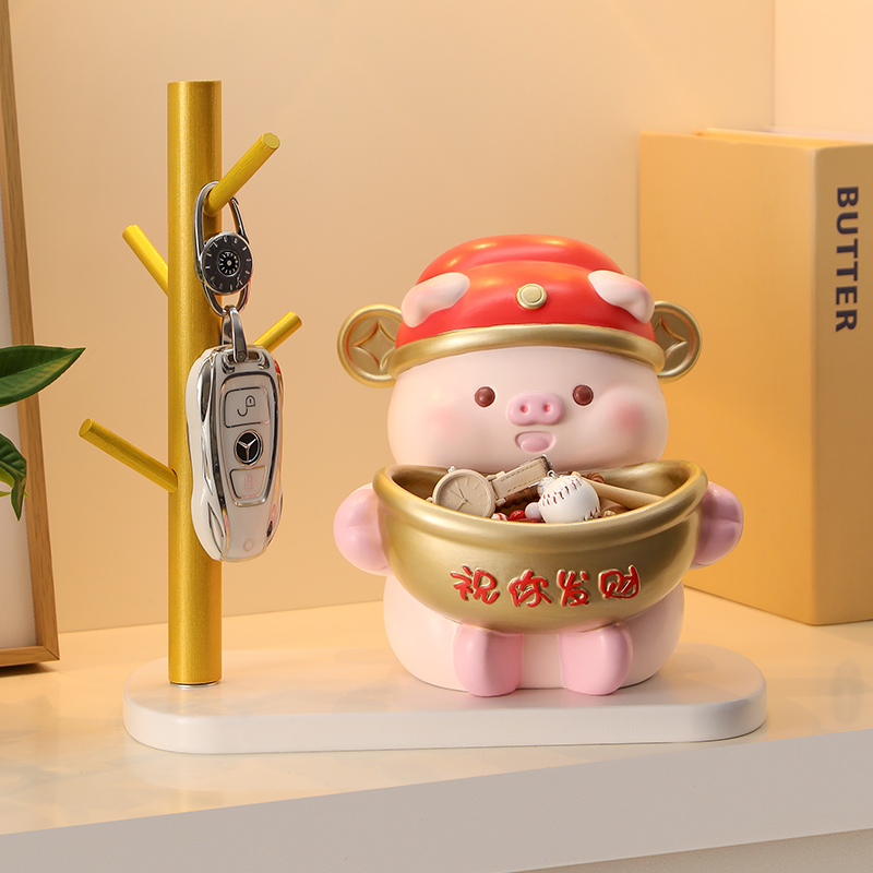 可爱小猪客厅入户门口钥匙收纳玄关装饰摆件客厅鞋柜乔迁新居礼物