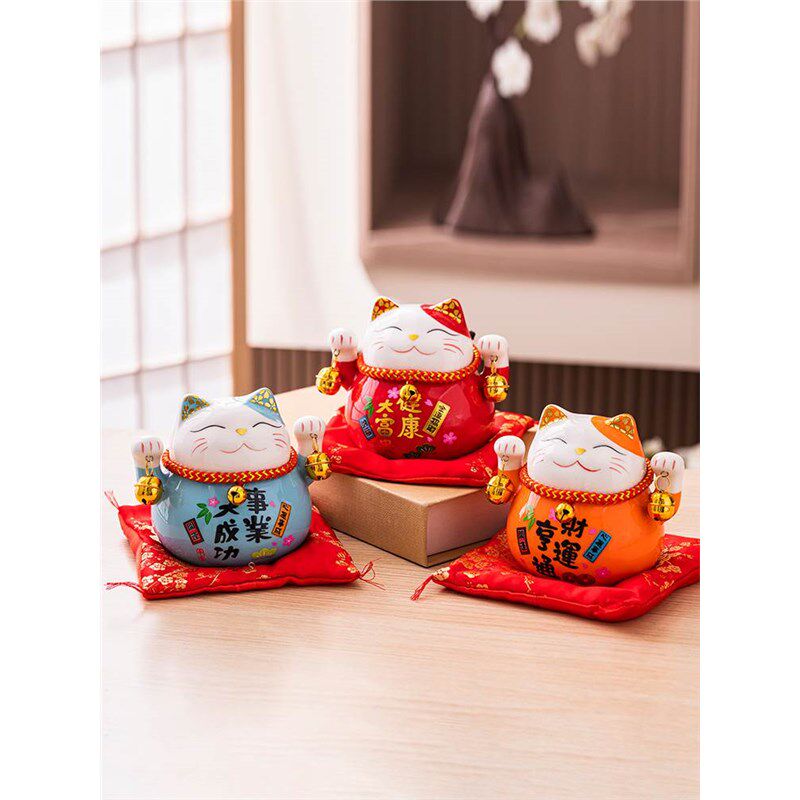创意招财猫小摆件陶瓷办公室桌面装饰家居客厅存钱罐发财开业礼品