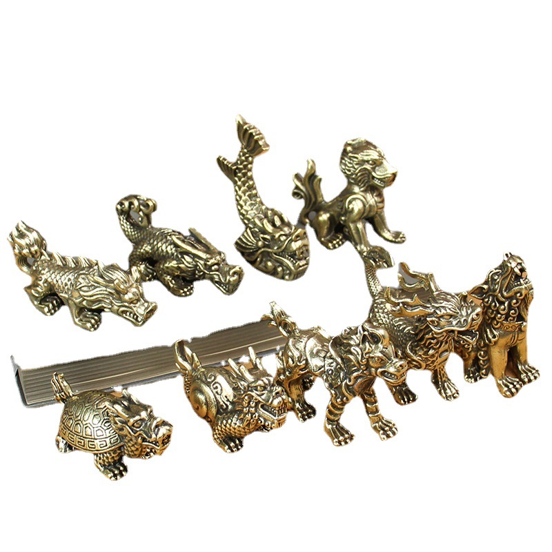 纯铜龙生九子一套黄铜狴犴赑屃螭吻蚣蝮椒图蒲牢狻猊饕餮睚眦摆件