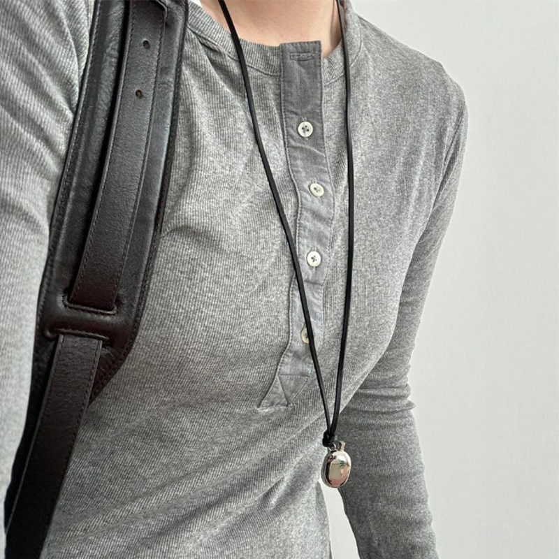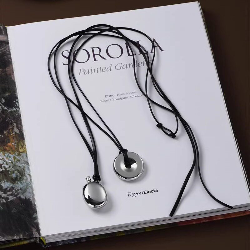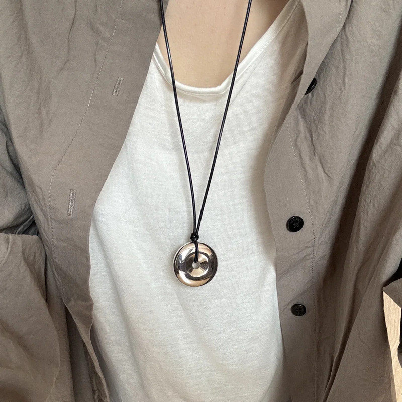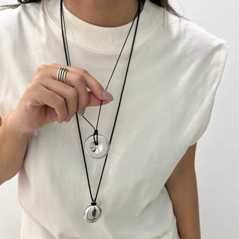 水瓶圆环黑色皮绳项链女轻奢小众设计高级感叠戴银色吊坠毛衣链