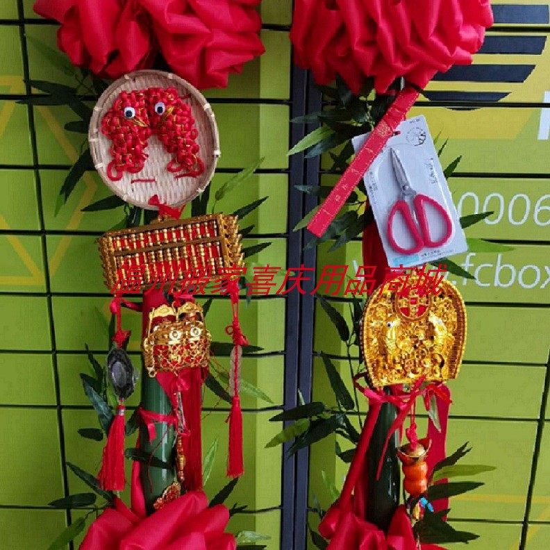 温州搬家习俗新房乔迁红花竹入宅红绸花竹十全十美新居装饰全套整
