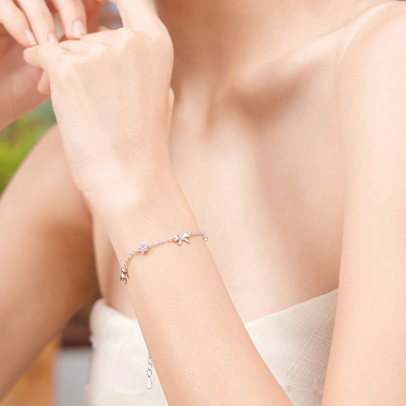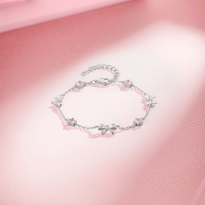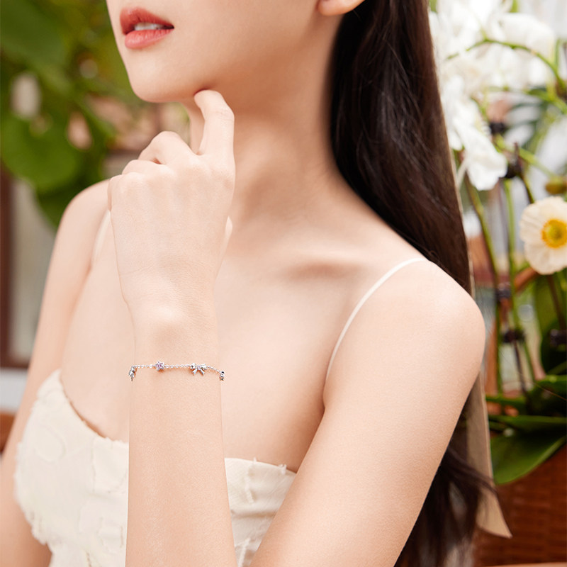 周六福手链女S925银蝴蝶结手饰小众气质送女友圣诞礼物