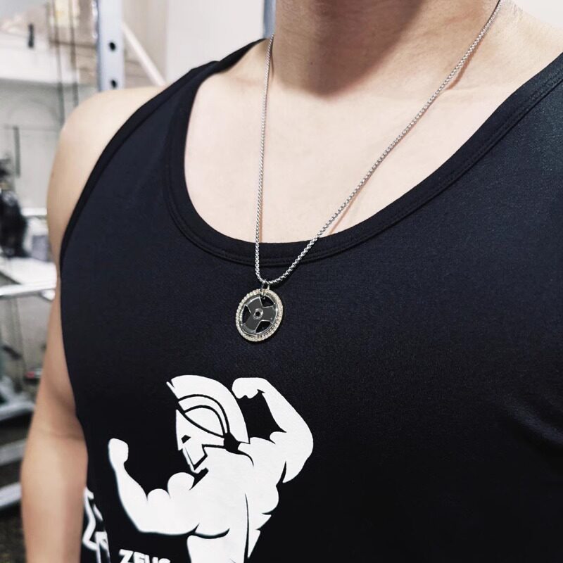 杠铃片钛钢亮面黄金色可分离钻石挂坠健身硬核项链男甜酷长款吊坠