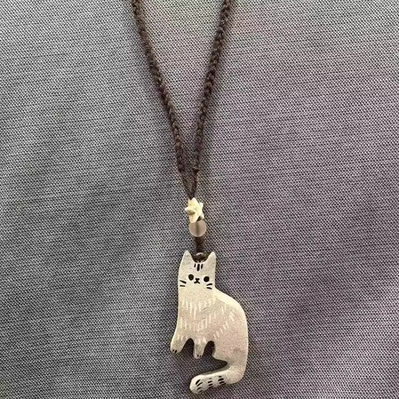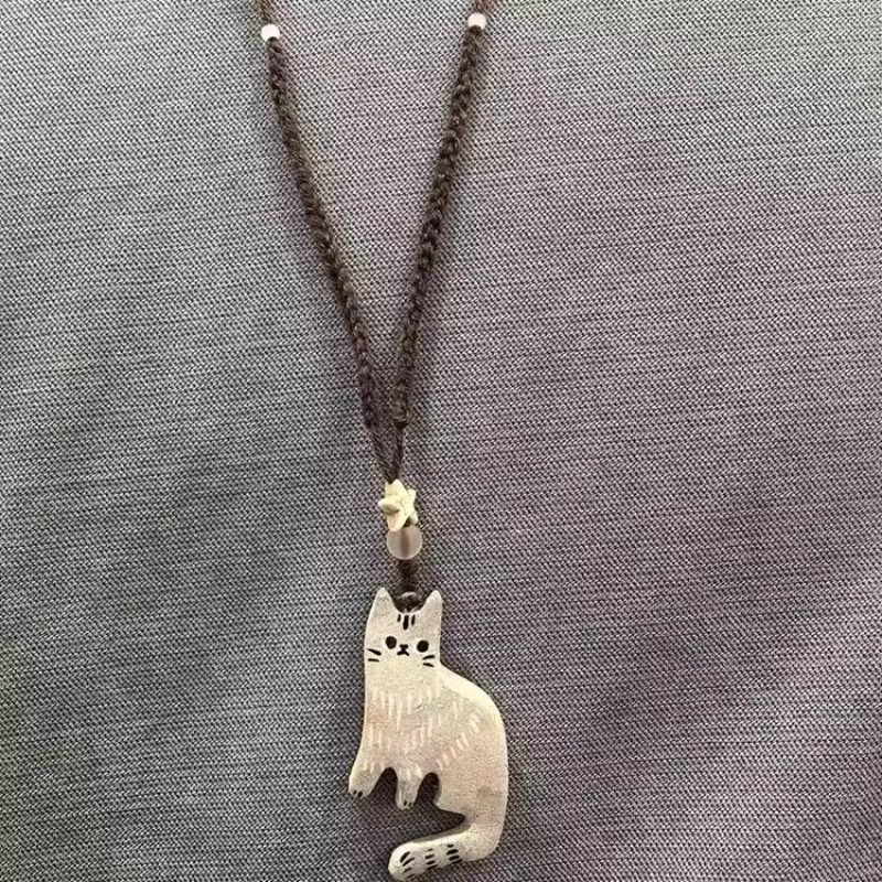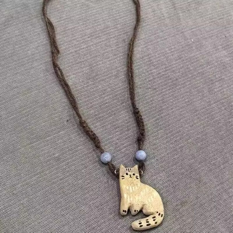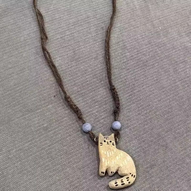 复古米灰色小猫项链2025新款秋冬小众设计毛衣链棕色手编绳锁骨链