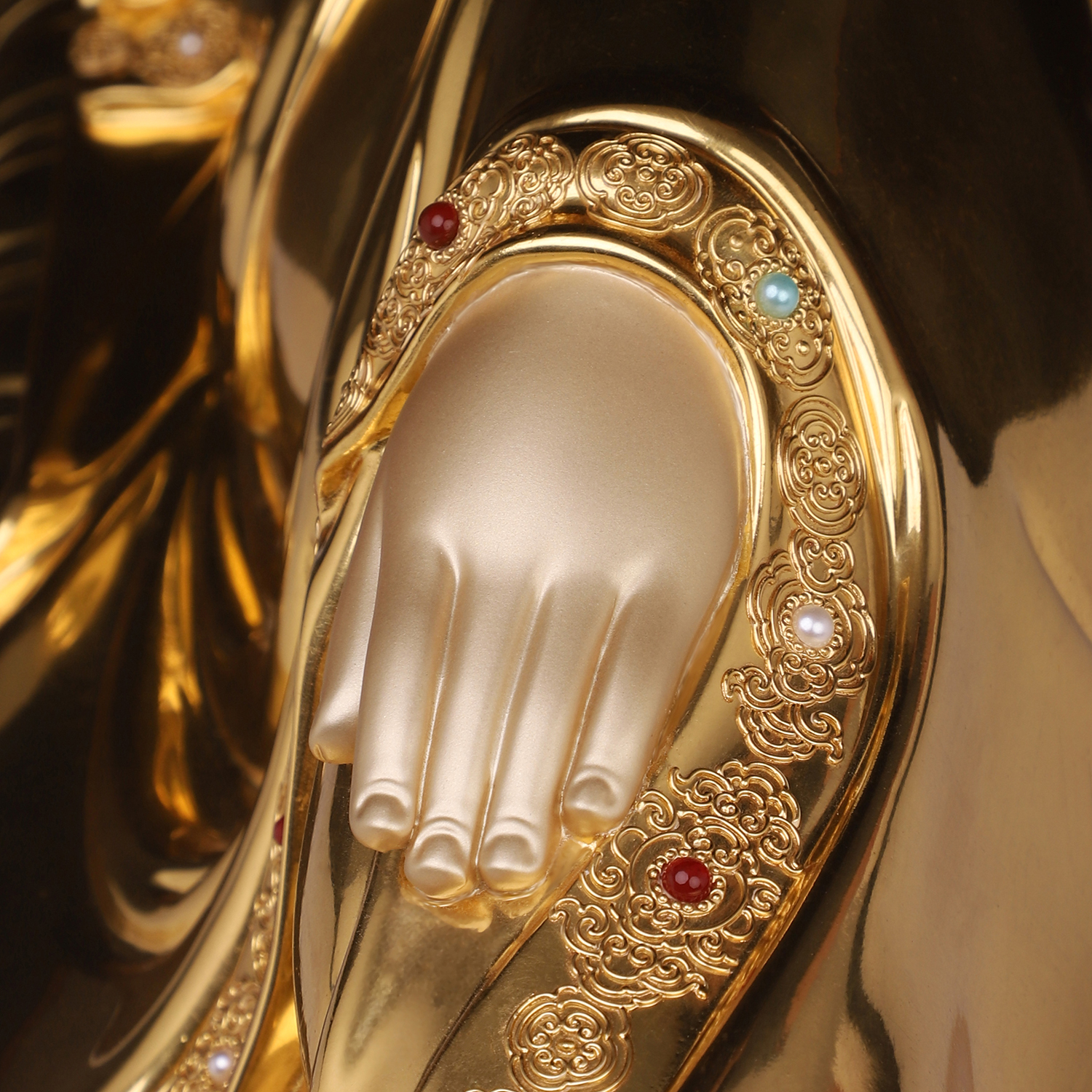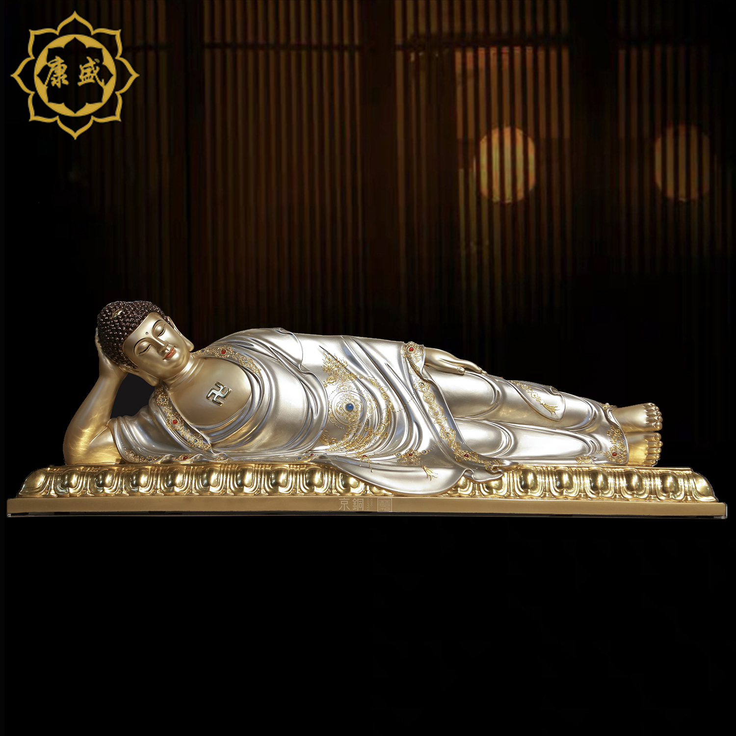 纯铜贴金释迦牟尼卧佛佛像镶宝掐丝如来佛祖睡佛神像家用摆件