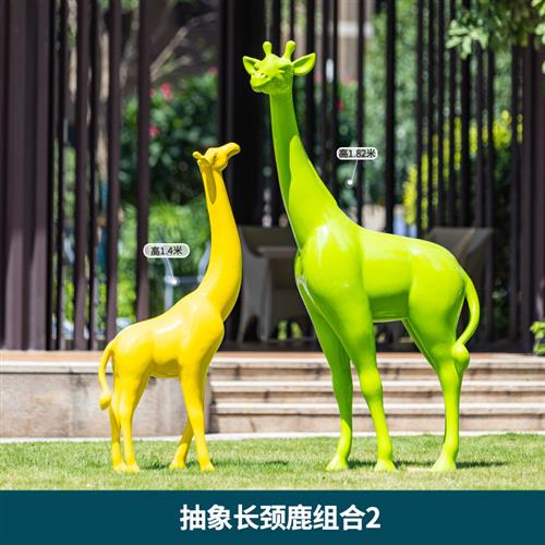 园林景观玻璃钢鹿雕塑摆件抽象几何长颈鹿户外大型楼盘售楼部装饰