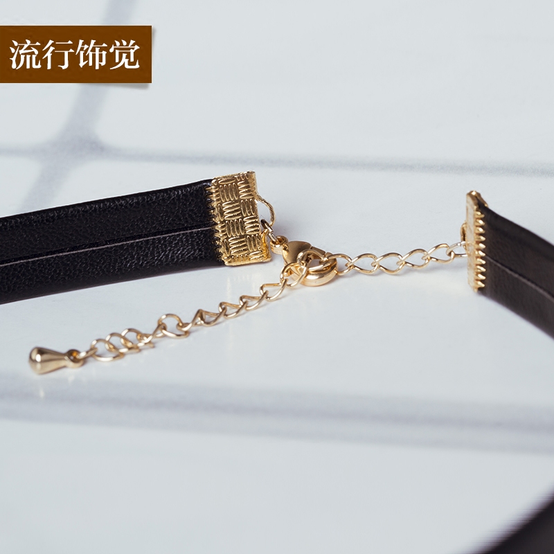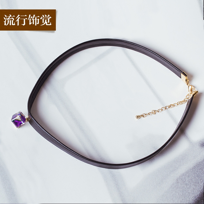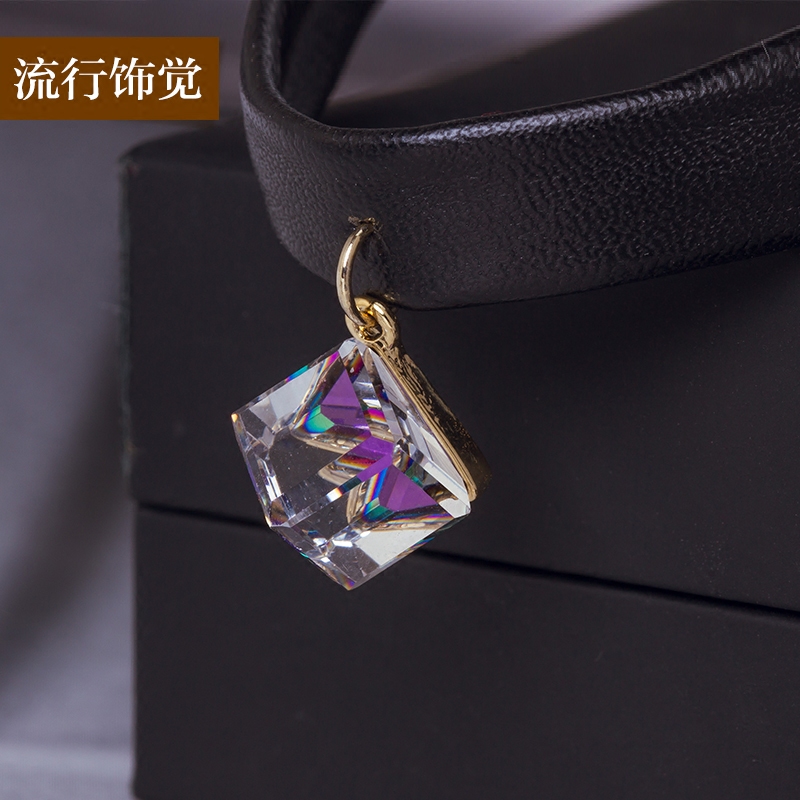 流行饰觉 韩版黑色仿皮坠方糖炫彩水晶颈链原宿风格短项链女包邮