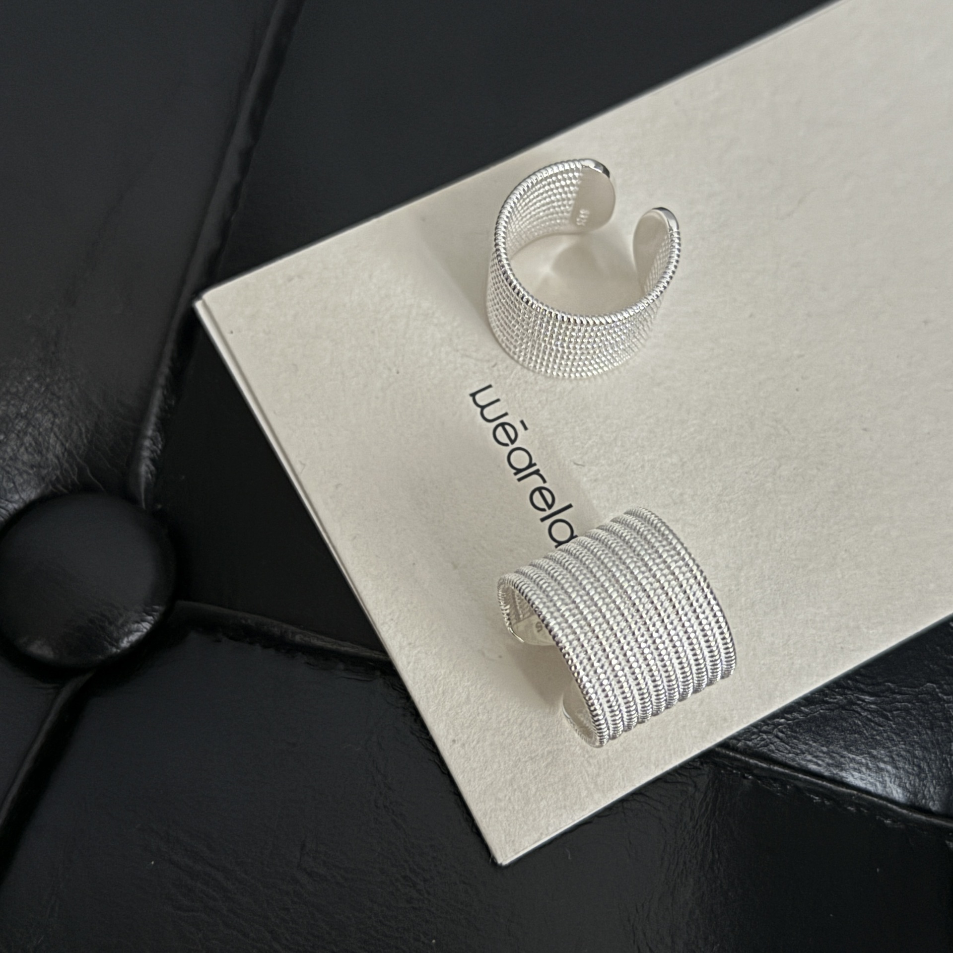 s925纯银韩版重工宽版戒指女小众设计感ins风线条食指指环手饰品