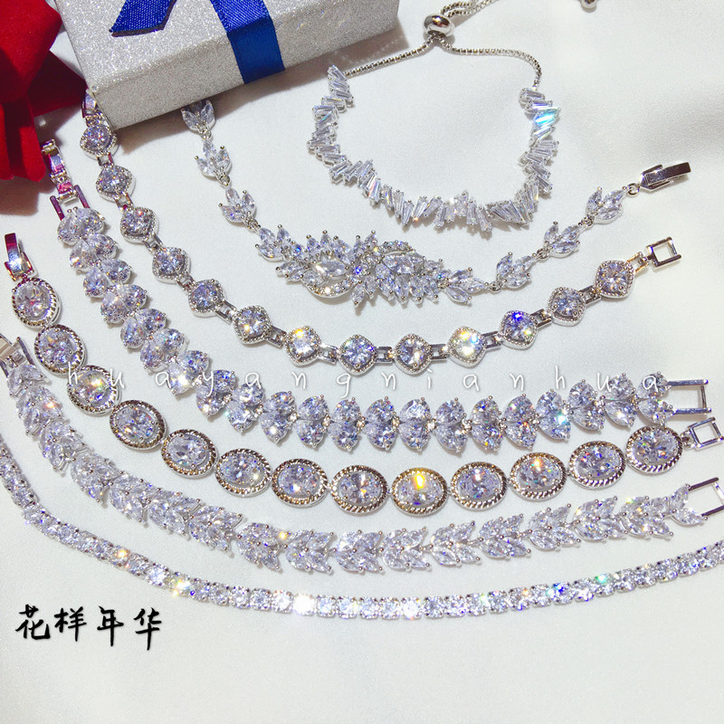白色超闪高级锆石水晶手链生日礼物宴会微镶满钻小众设计简约百搭