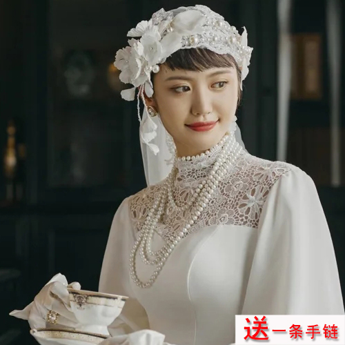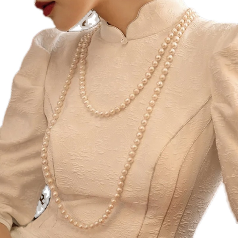 配旗袍珍珠项链双层长款女衣服装饰品小香风宫廷毛衣链子复古469
