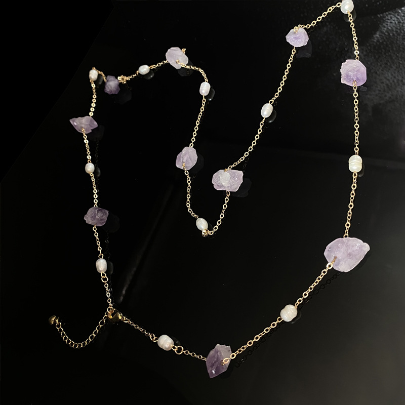 晨星将至 满天星紫色原石水晶项链轻奢小众锁骨链闺蜜礼物高档