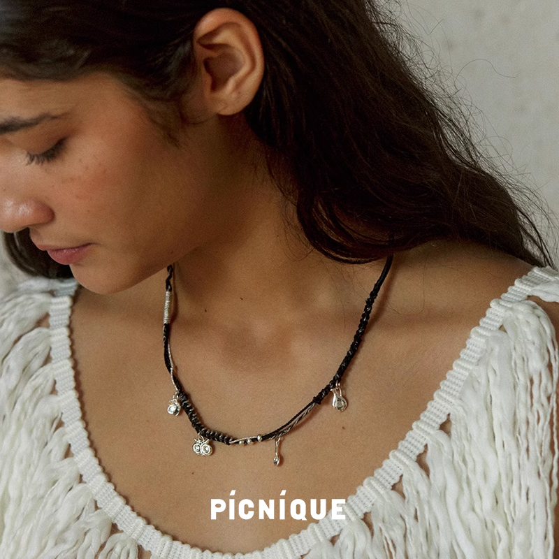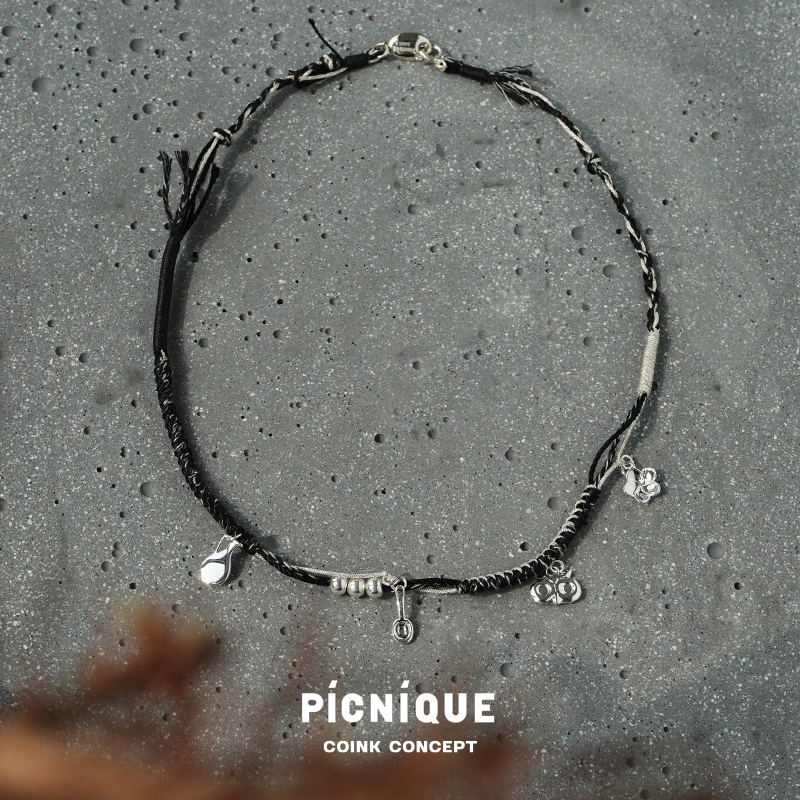 PICNIQUE 猫头鹰花卉陶罐勺子黑银编绳细项链 原创设计师小众气质