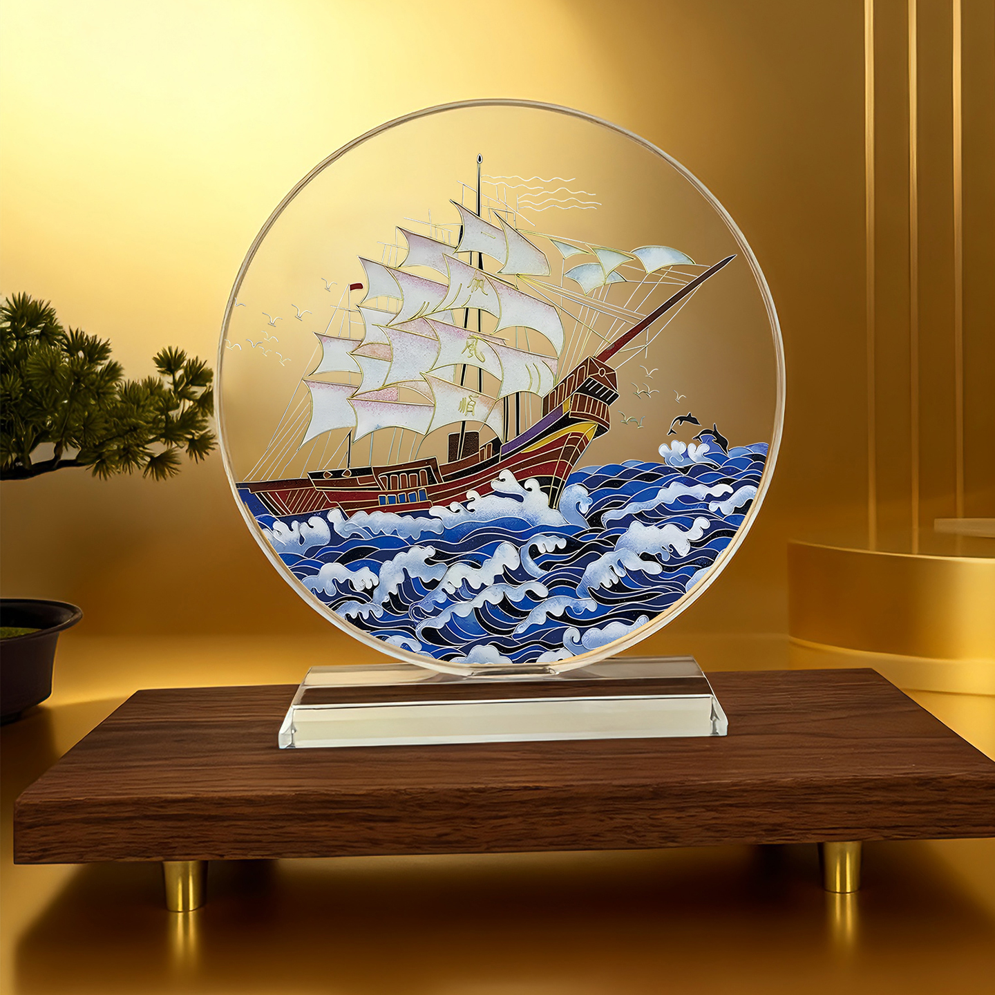 一帆风顺帆船内雕水晶摆件桌面客厅玄关装饰工艺品乔迁开业礼摆台