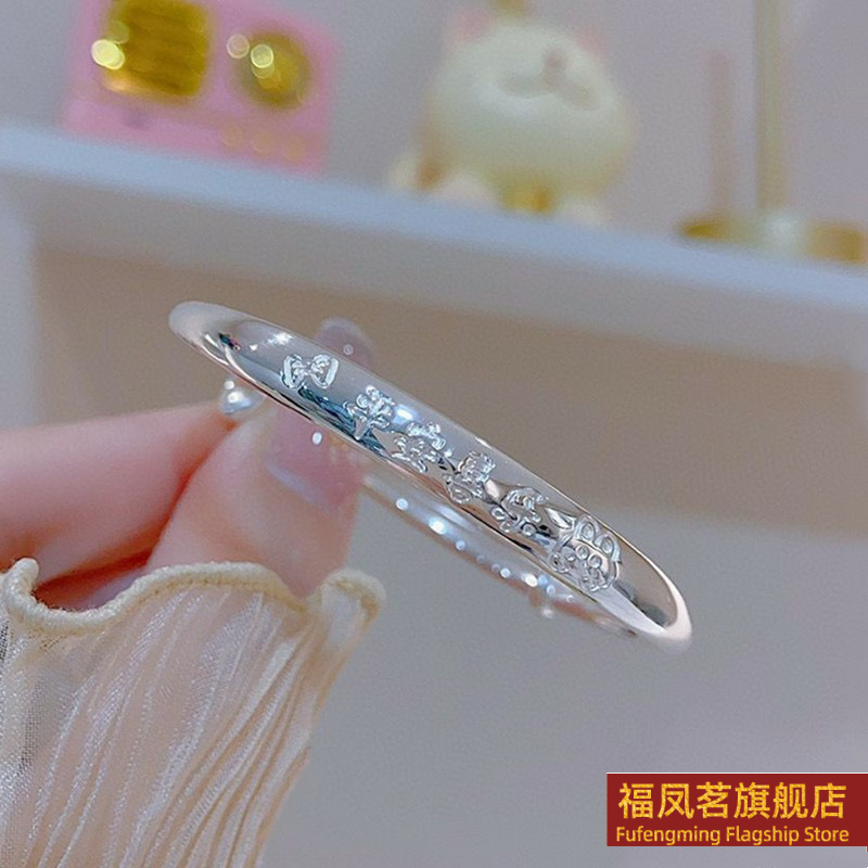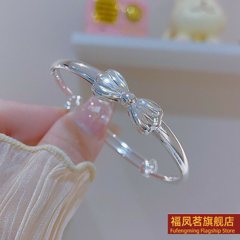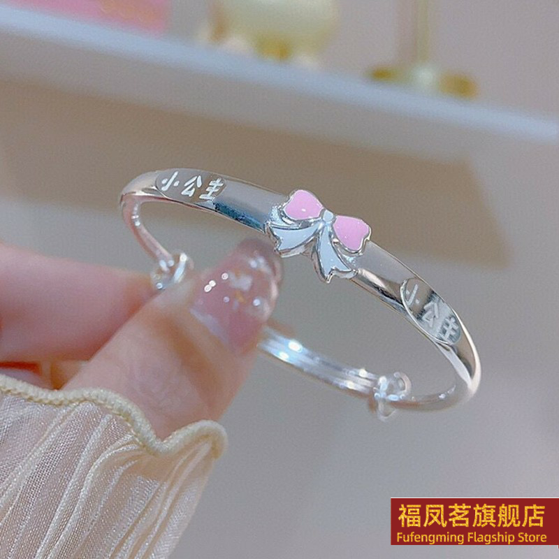 正生足银9999小公主蝴蝶结竹节纯银手镯女孩子中大童儿童学生童镯