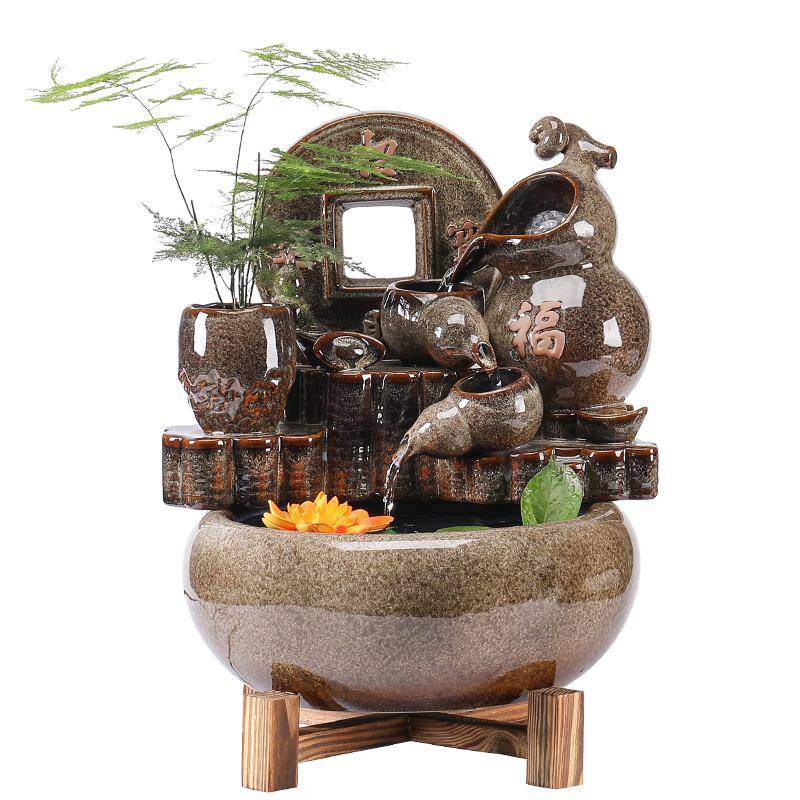 中式陶瓷招财循环流水摆件客厅创意喷泉瀑布水景鱼缸乔迁开 业送