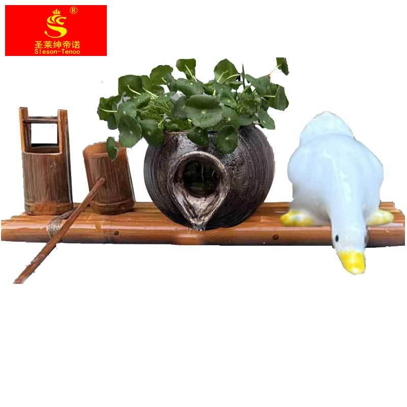 庭院陶罐流水器陶瓷鱼缸循环过滤增氧竹子搭配水池石槽造景摆件配