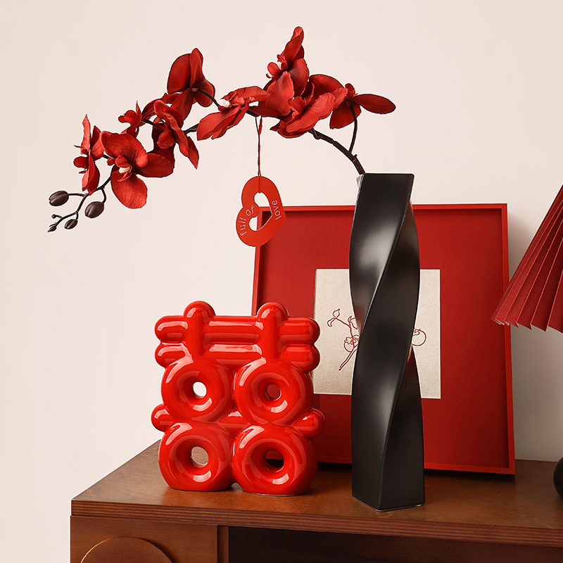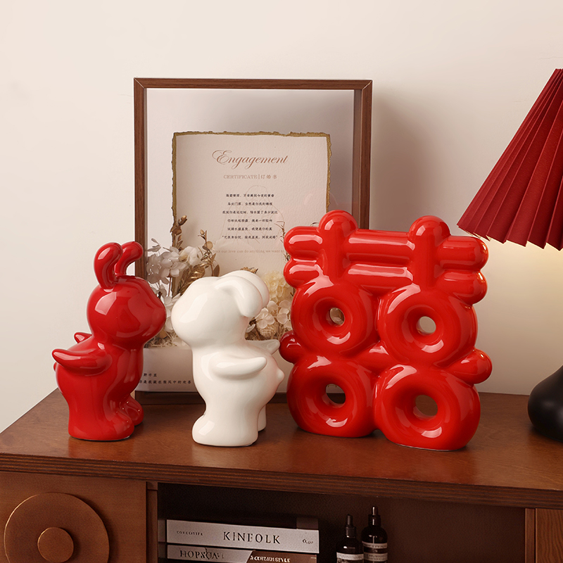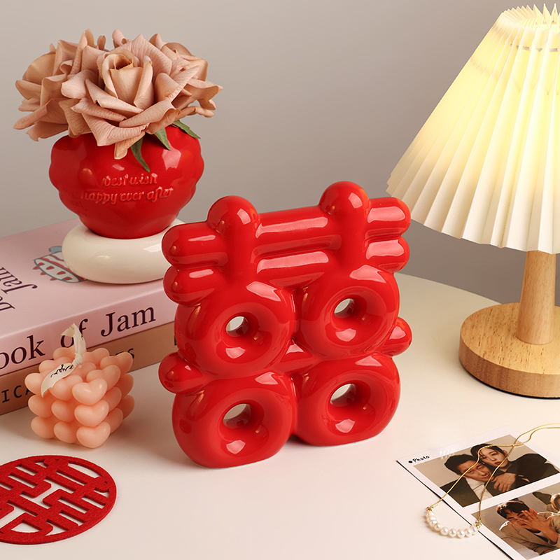 创意陶瓷喜字摆件客厅玄关装饰品酒柜创意婚房布置乔迁结婚礼物