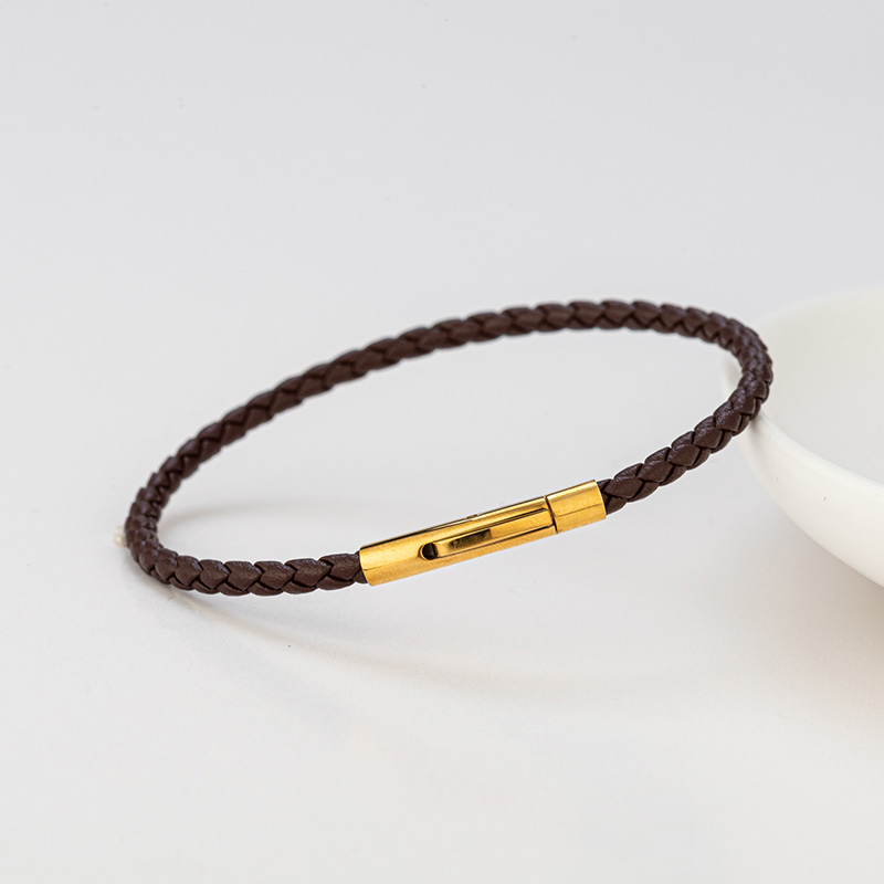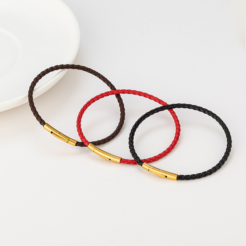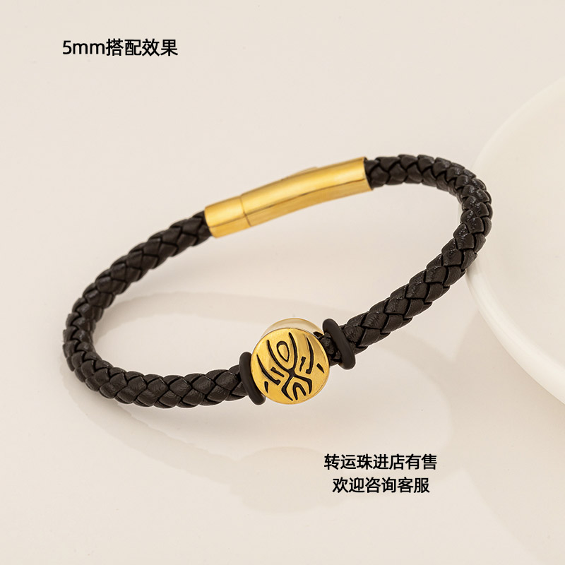 真皮金色一字扣手链串3D黄金硬饰品男女黑红色牛皮绳情侣替换手绳
