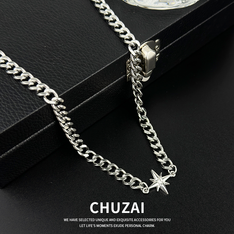 CHUZAI星芒古巴链项链男款欧美嘻哈小众高级感钛钢锁骨链女士情侣