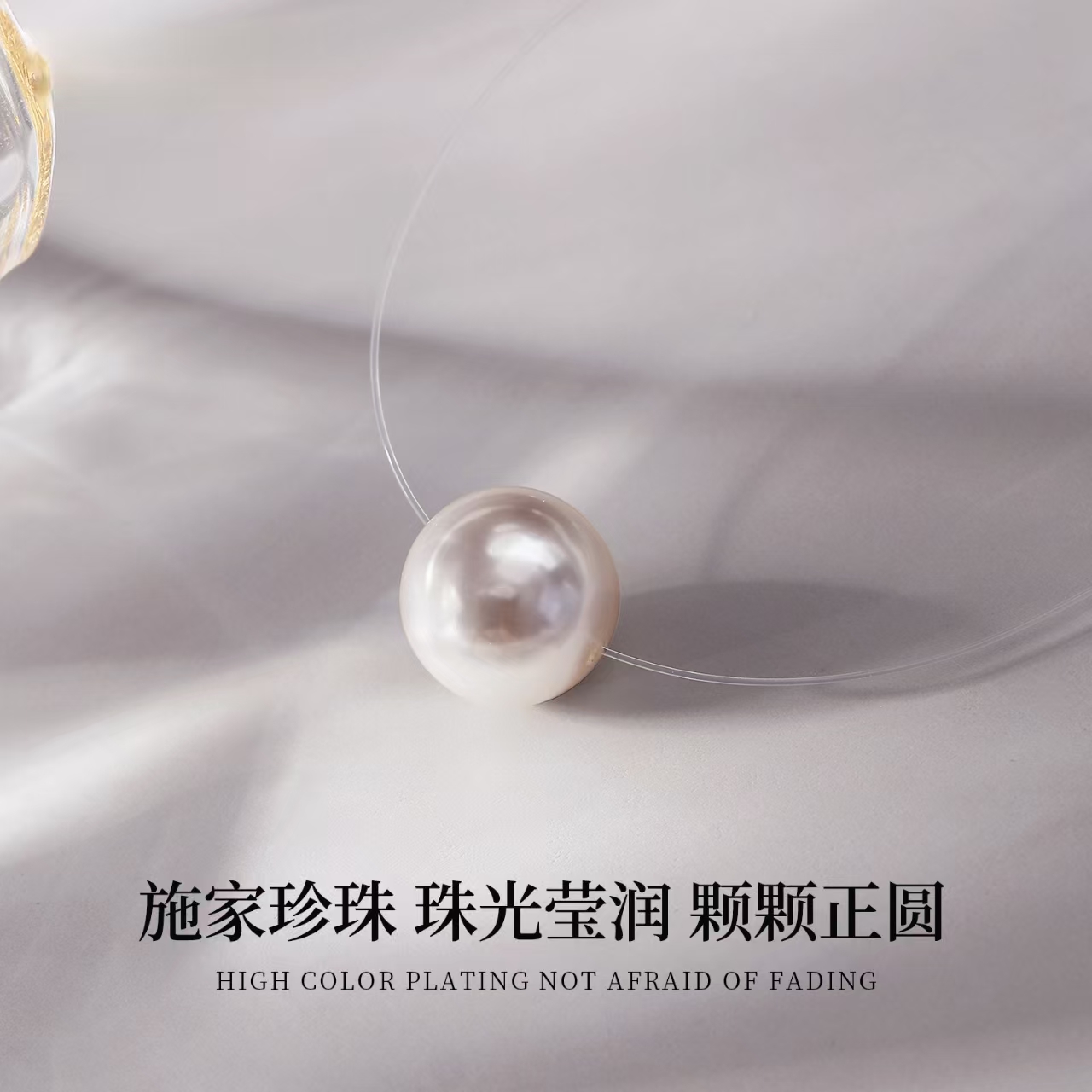 人鱼之泪施家珍珠项链女2025新款单颗鱼线锁骨链百搭配饰精致正圆