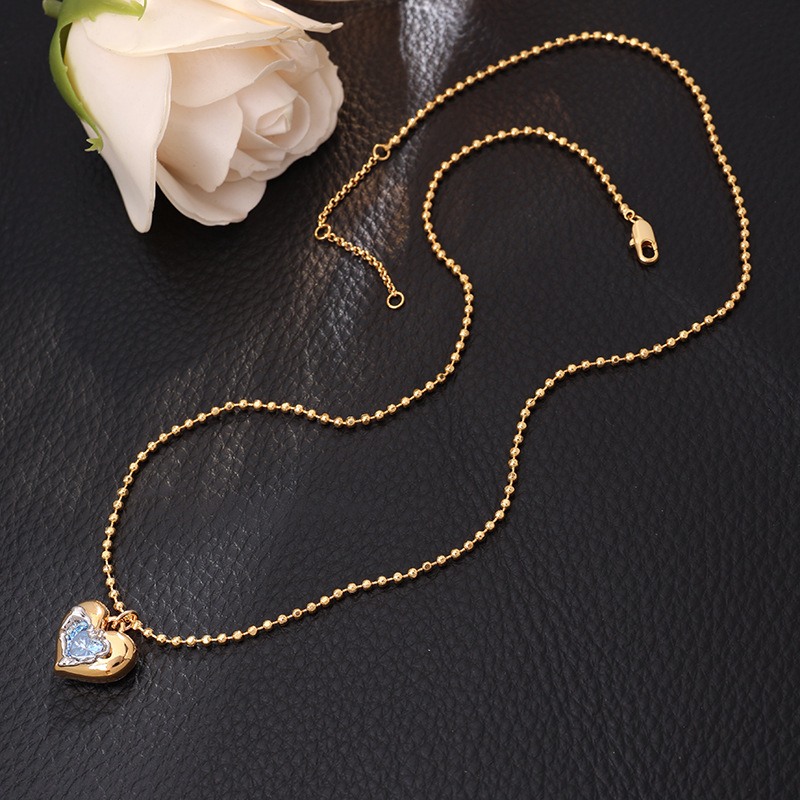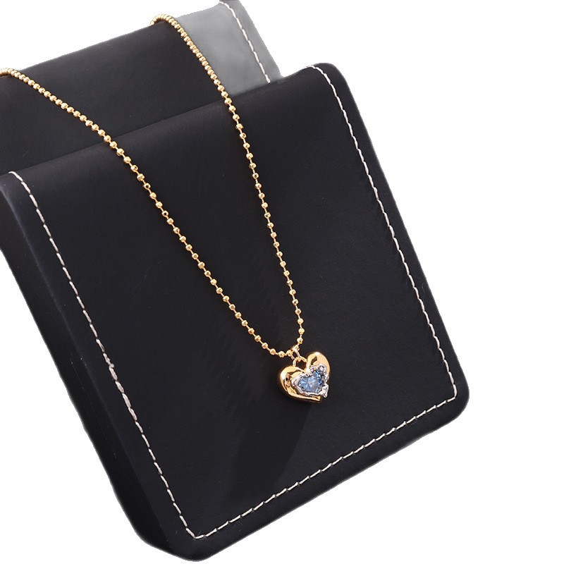 【日韩原创设计师款】高版本真金电镀蓝色锆石爱心项链女甜美小众