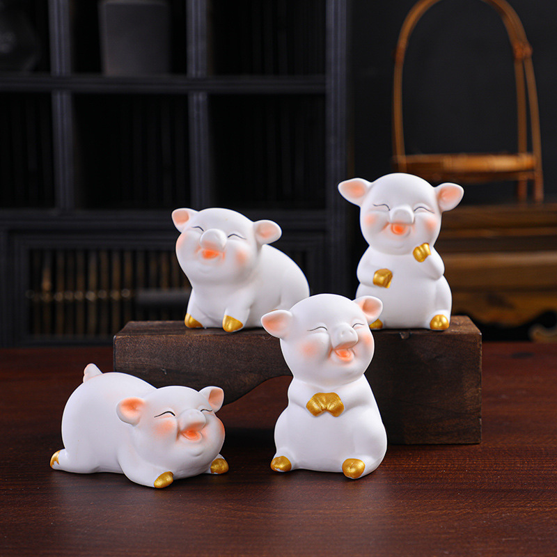 陶瓷招财进宝猪生肖猪描金工艺装饰品创意家居公仔汽车摆件五福猪