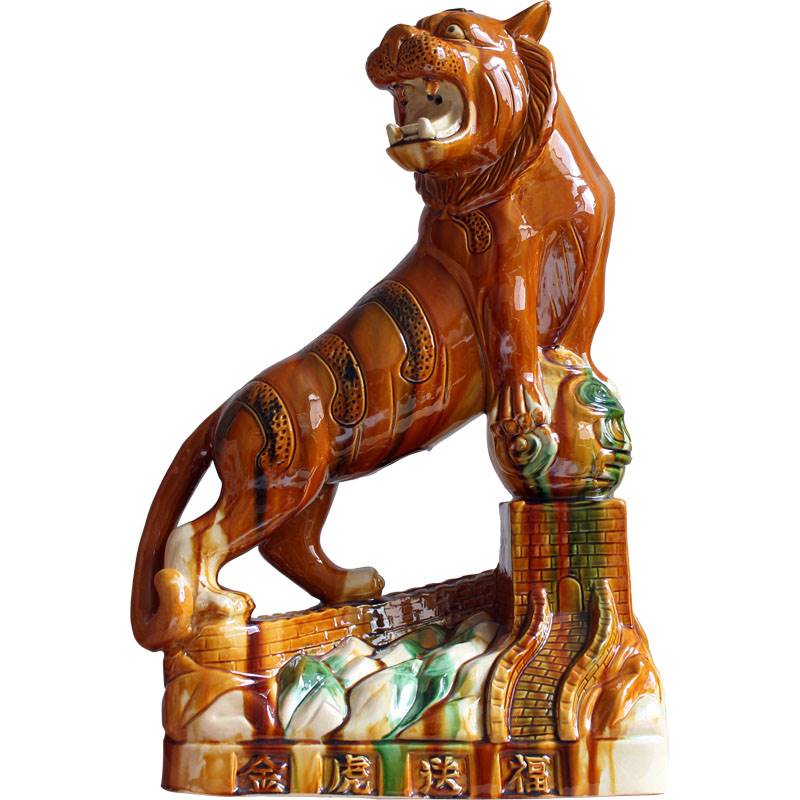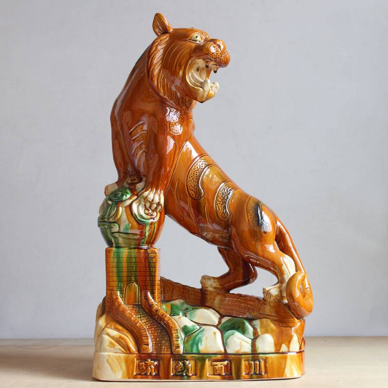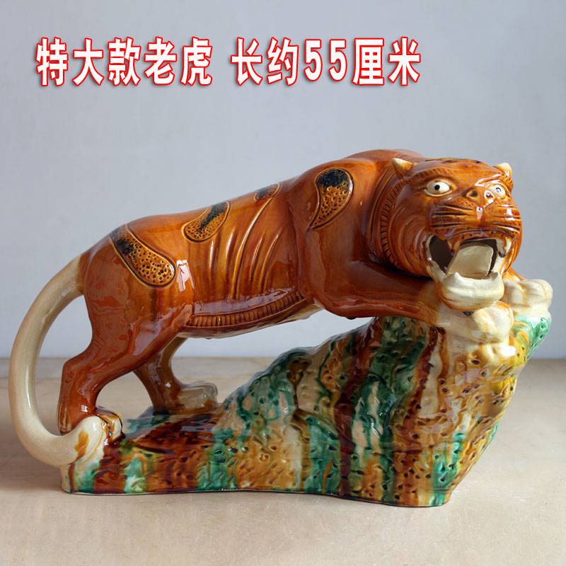 陶瓷老虎摆件唐三彩老虎生肖大虎家居办公摆设商务开业礼品工艺礼