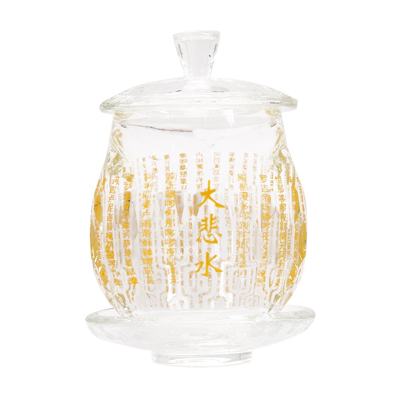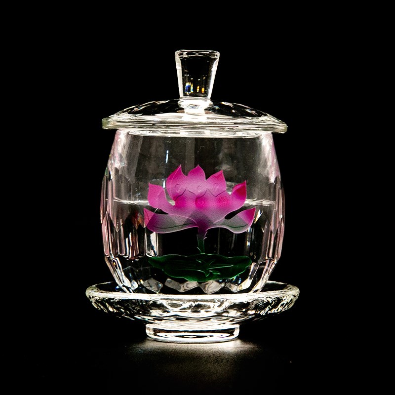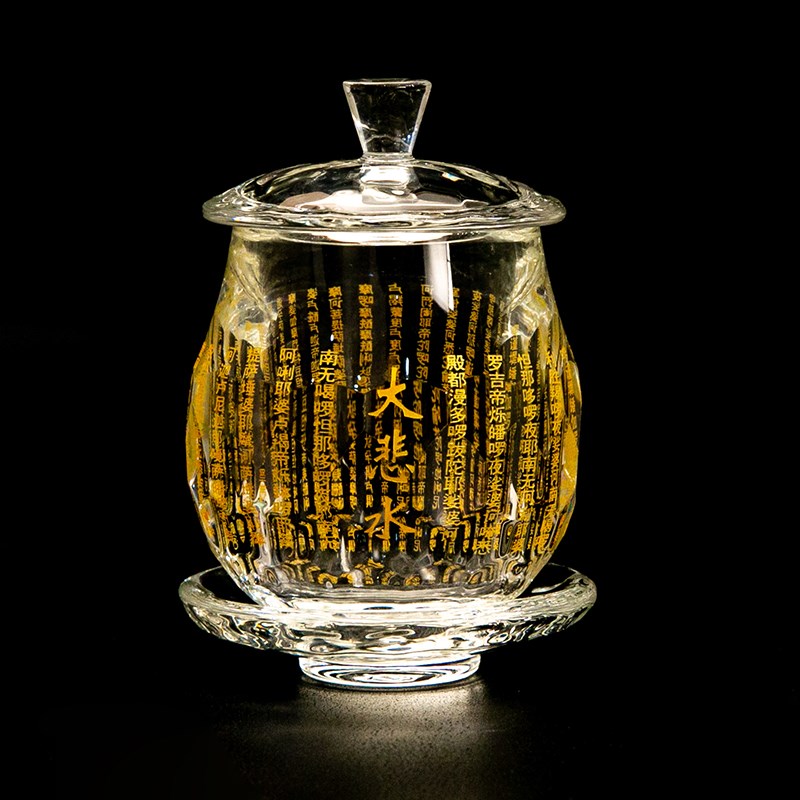 供佛水杯加厚大悲咒水晶杯圣v水杯雕刻心经荷花供杯财神观音净水
