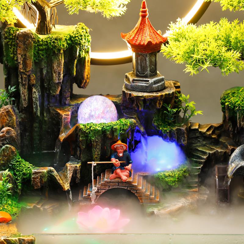 小型假山鱼缸客厅家用循环水流水喷泉水景小造景风水轮生财摆件