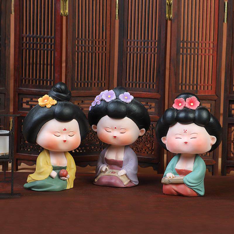 创意国潮唐仕女古风摆件卧室客厅装饰品摇头公仔工艺品汽车摆饰厂