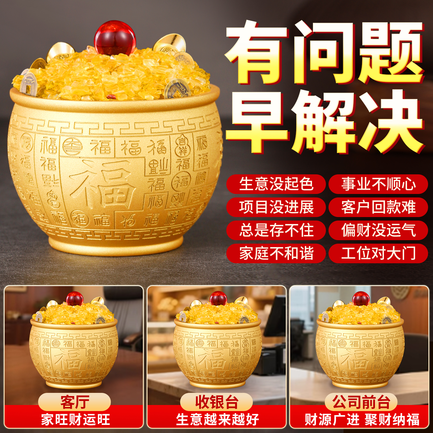 砂金百福铜缸招财进宝米缸聚宝盆存钱罐冰箱家居客厅公司装饰摆件
