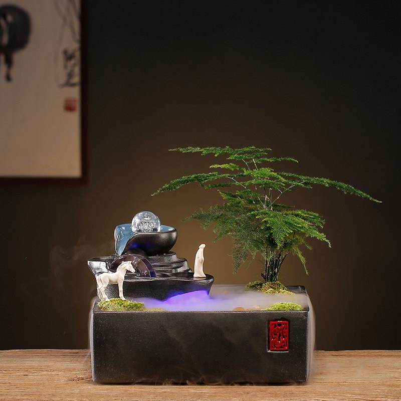 循环流水生财鱼缸摆件水车客厅办公室风水轮水晶球装饰品开业礼品