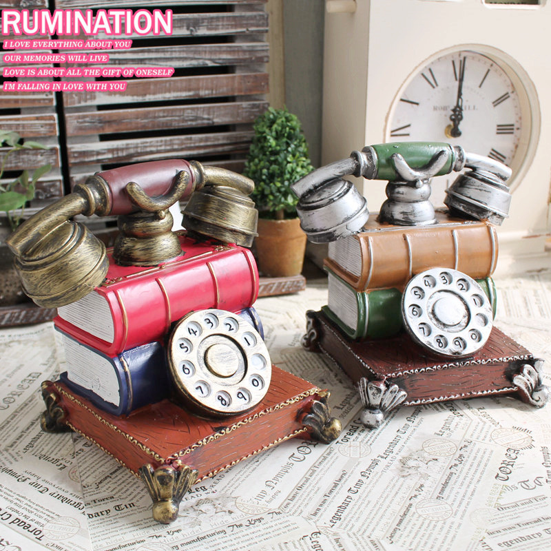 复古电话模型钟表摆件创意家居z桌面老式装饰品咖啡厅店铺个性摆