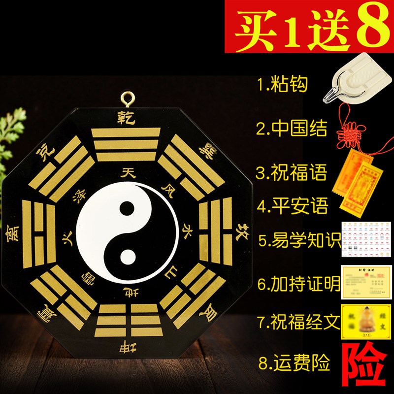 宏图好运桃木八卦镜凸镜太极阴阳乾坤八卦图八卦凹镜家用门口