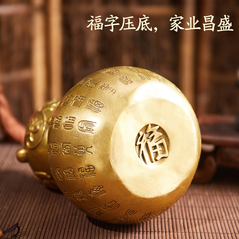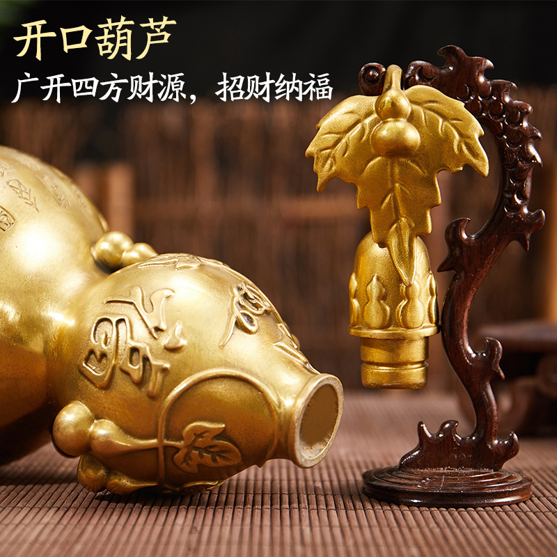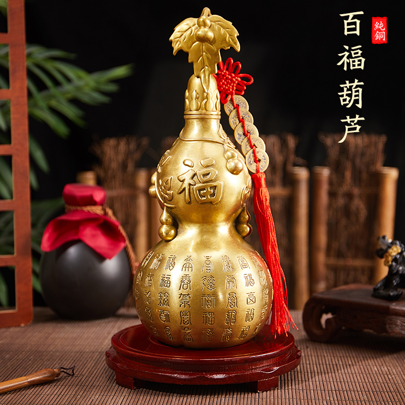 纯铜百福葫芦家居摆件招财福禄开口空心客厅玄关办公室店铺工艺品