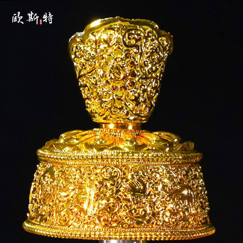 欧斯特铜鎏金贲巴文巴壶八吉祥雕花净水瓶奔巴壶灌顶宝瓶摆件