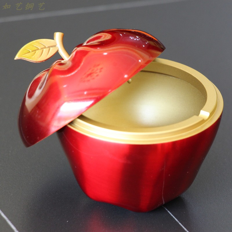 全铜烟灰缸平安夜红苹果带盖密封创意女士黄铜苹果首饰盒工艺摆件