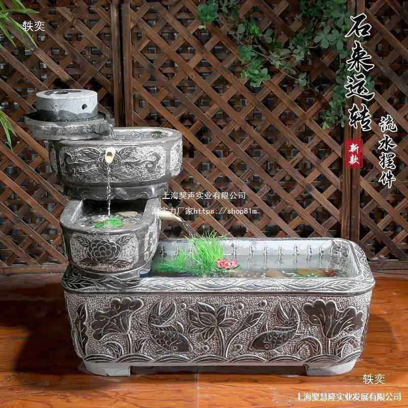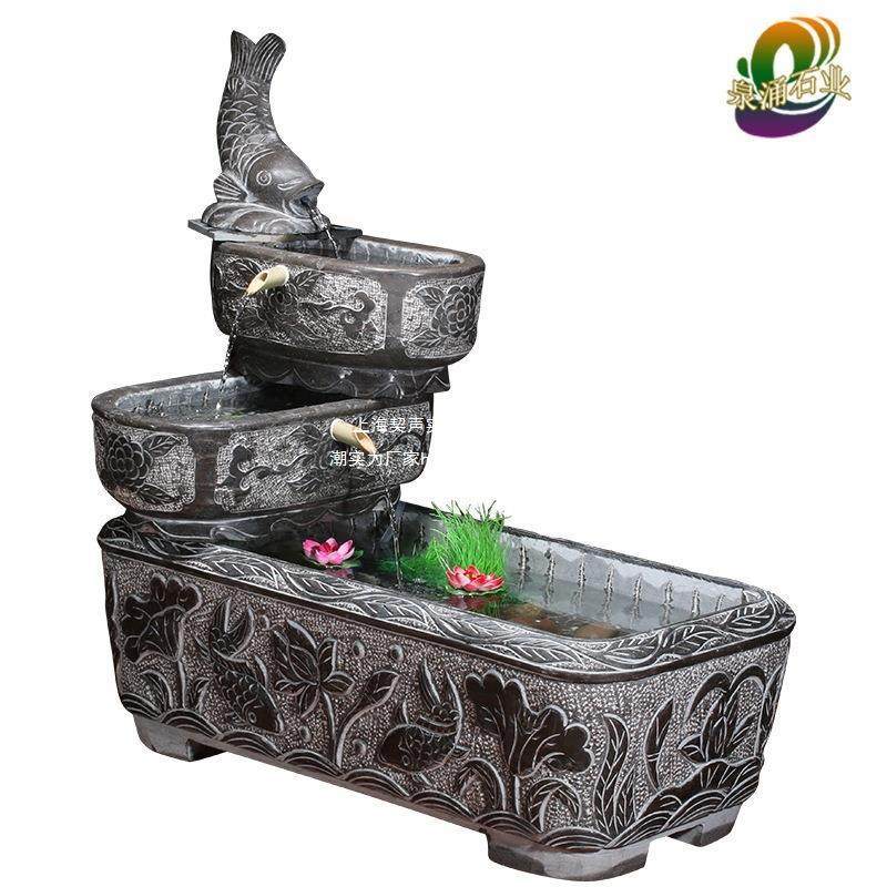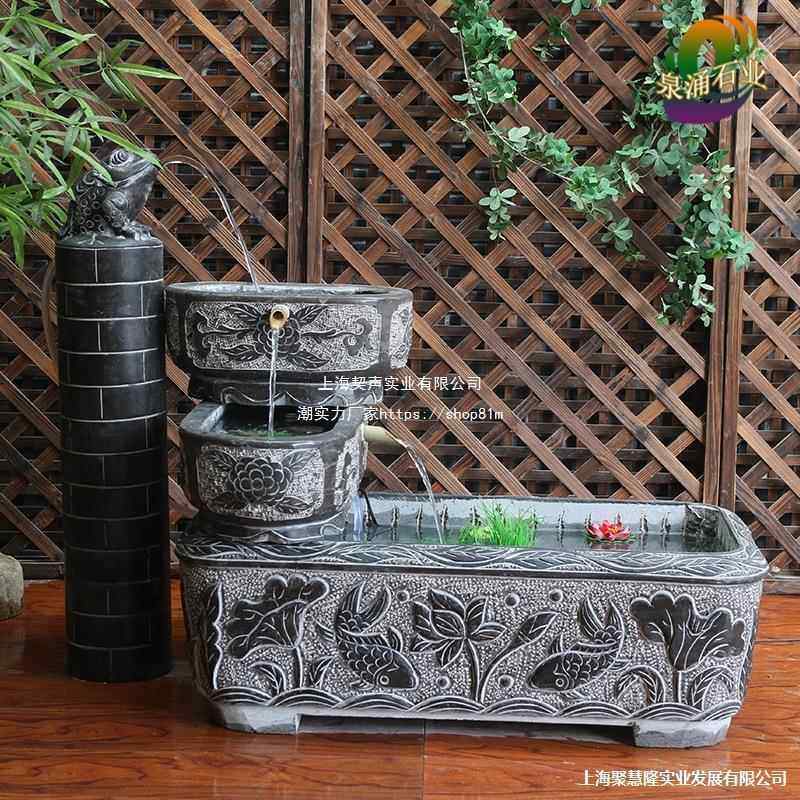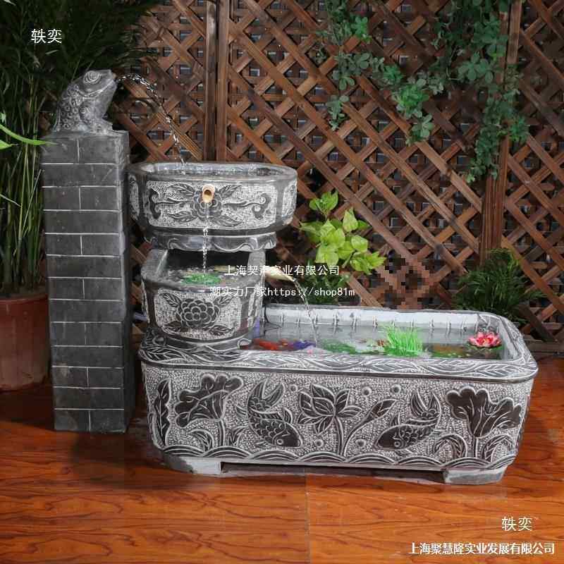 石槽鱼缸石雕养鱼th%loj#y池石头水内青石造景装室户庭院槽流外水
