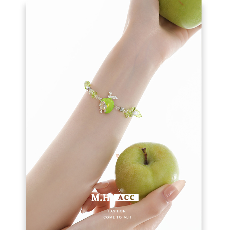 清新时尚青苹果手链女原创设计绿色天然石气质轻奢小众甜酷风首饰