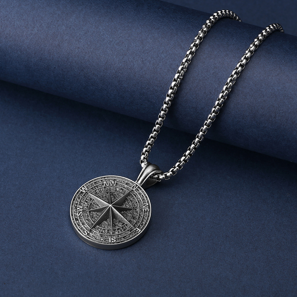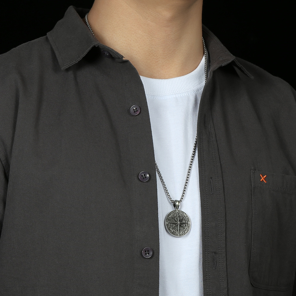 欧美跨境男士复古项链钛钢罗盘指南针吊坠不锈钢朋克饰品嘻哈配饰
