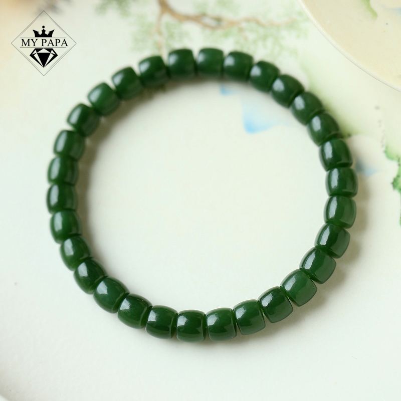 满眼绿意 MYPAPA和田玉系列收藏级老坑菠菜绿碧玉直切老型珠手串