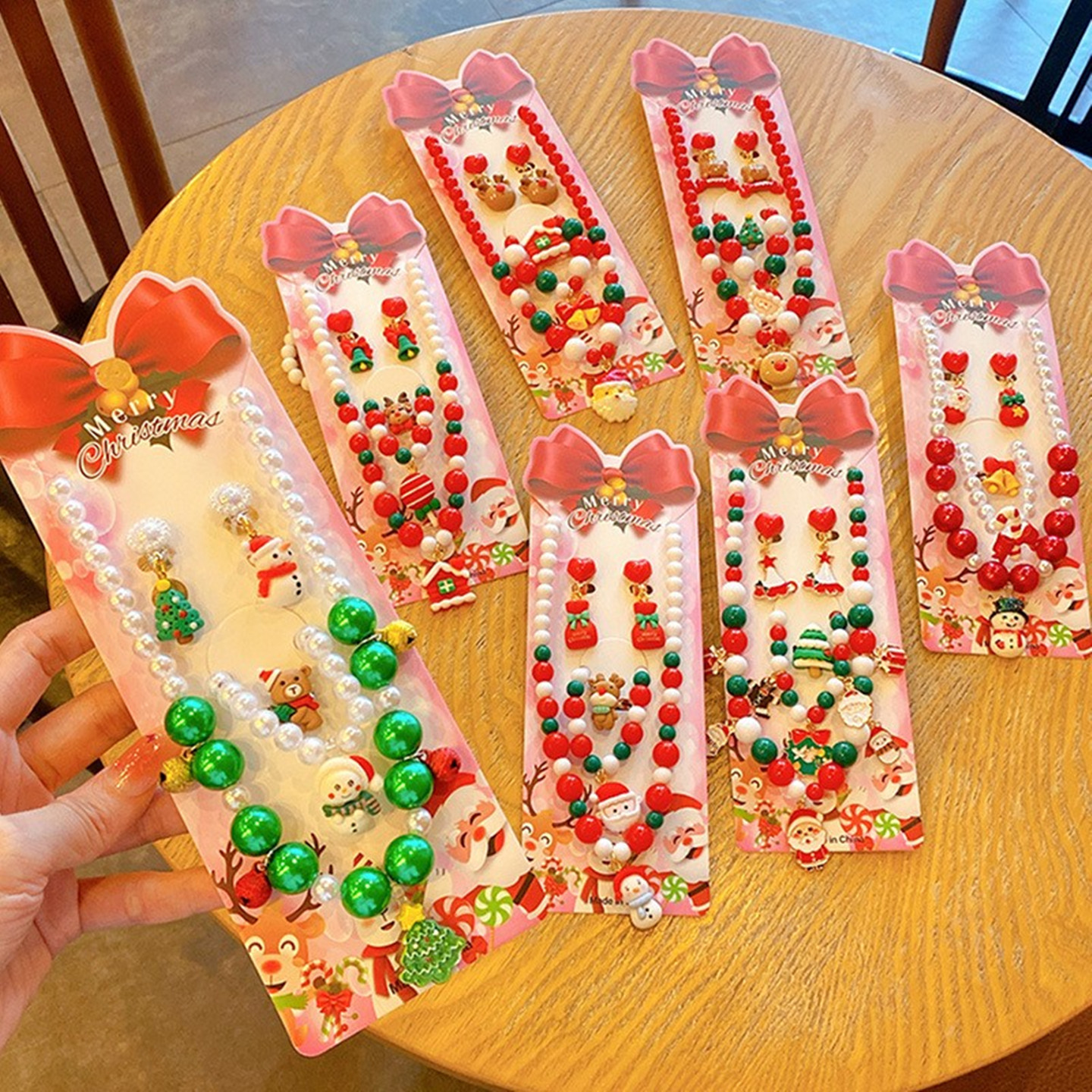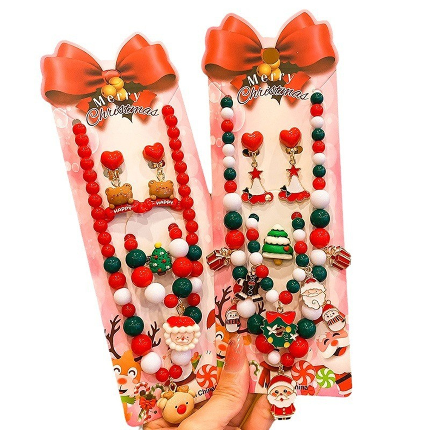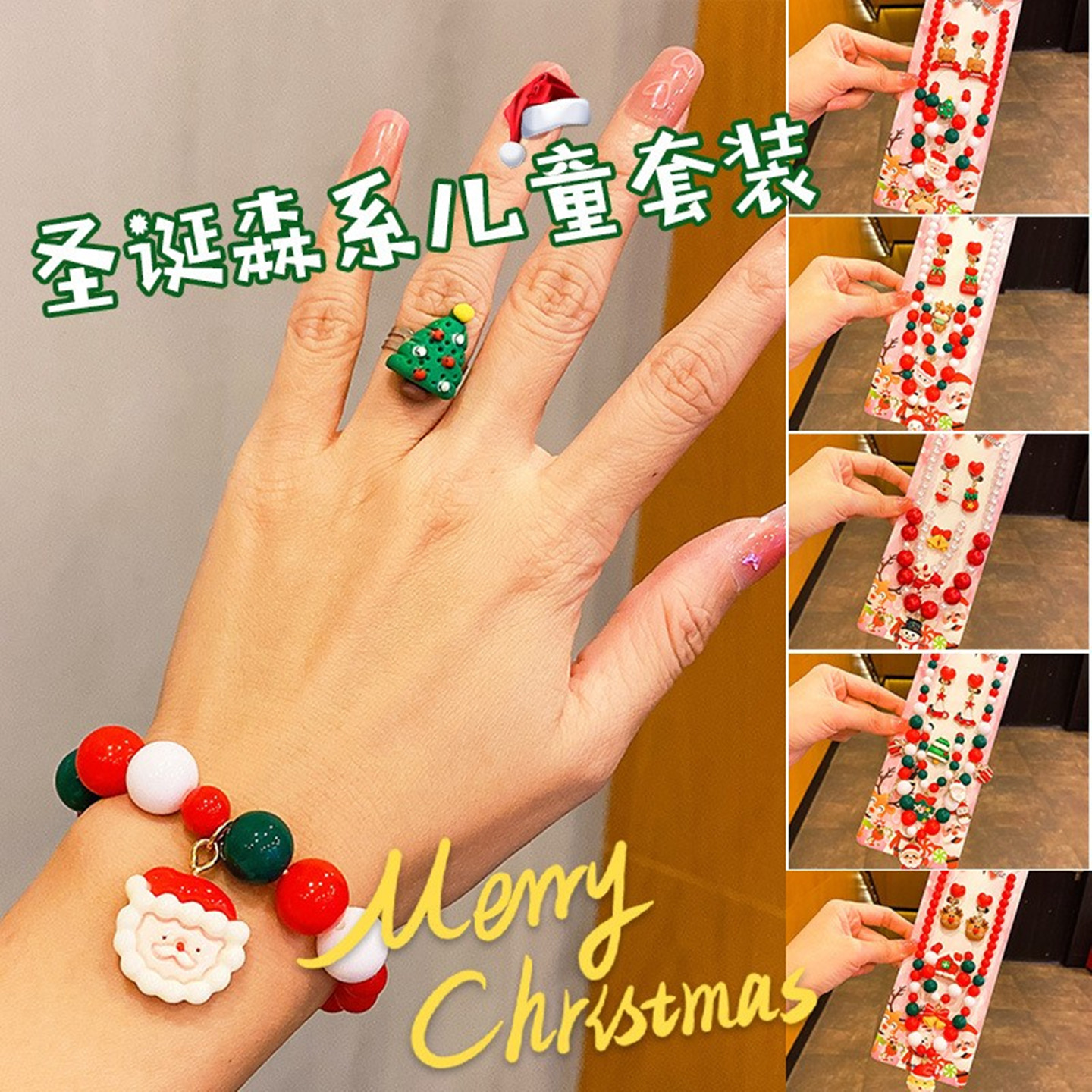 儿童项链女圣诞节项链套装耳环戒指可爱卡通麋鹿女童公主节日礼物