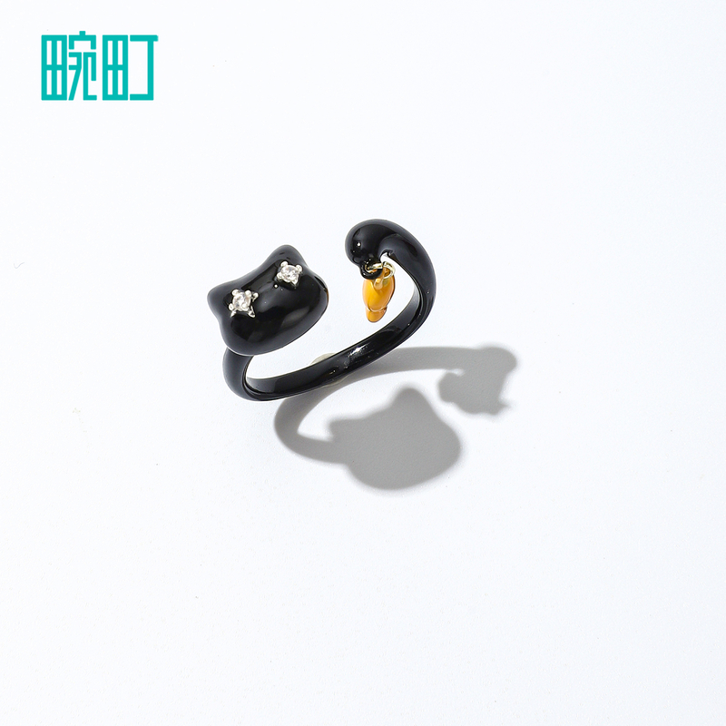 畹町可爱猫咪开口可调节戒指女轻奢高级感小众设计儿童成人饰品