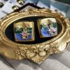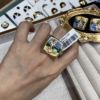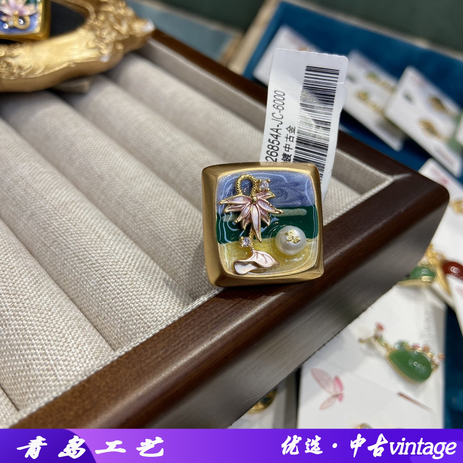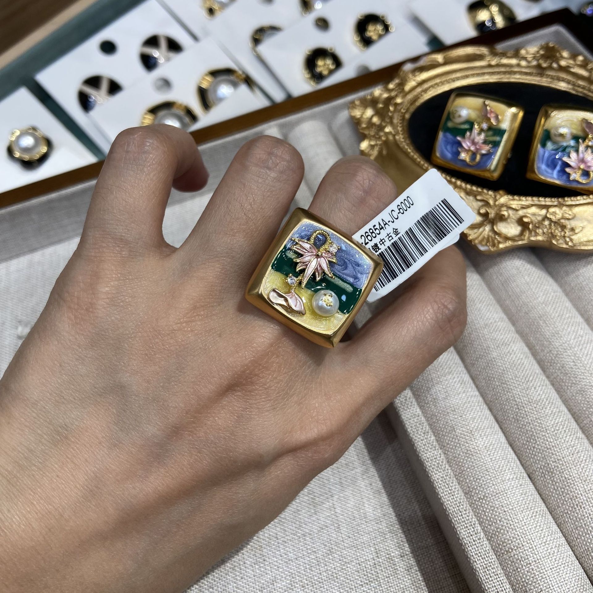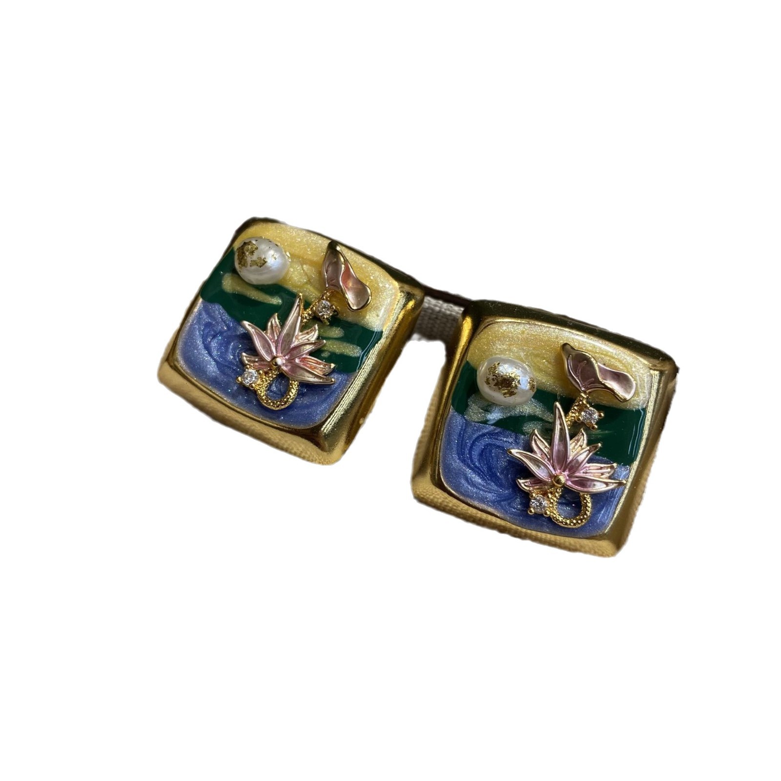 莫奈油画系列天然珍珠荷花耳钉珐琅滴油花朵方形戒指复古油画饰品