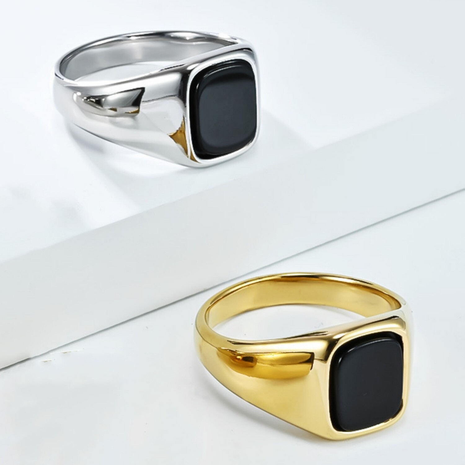 高级感帅气抛光钛钢镶锆石几何方形戒指环轻奢极简潮男女个性大气
